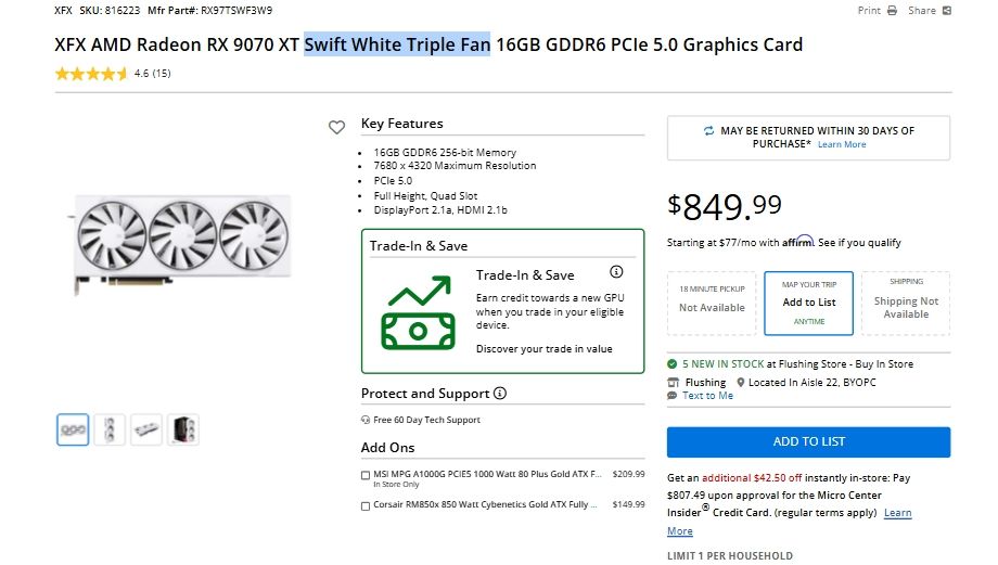 好意思国阛阓相同荒诞,亚马逊平台Radeon RX 9070 XT标价约960好意思元,较冷落零卖价暴涨50%。当今最“平价”的选拔是MicroCenter现货的XFX Swift White三电扇版体育游戏app平台,标价849好意思元。