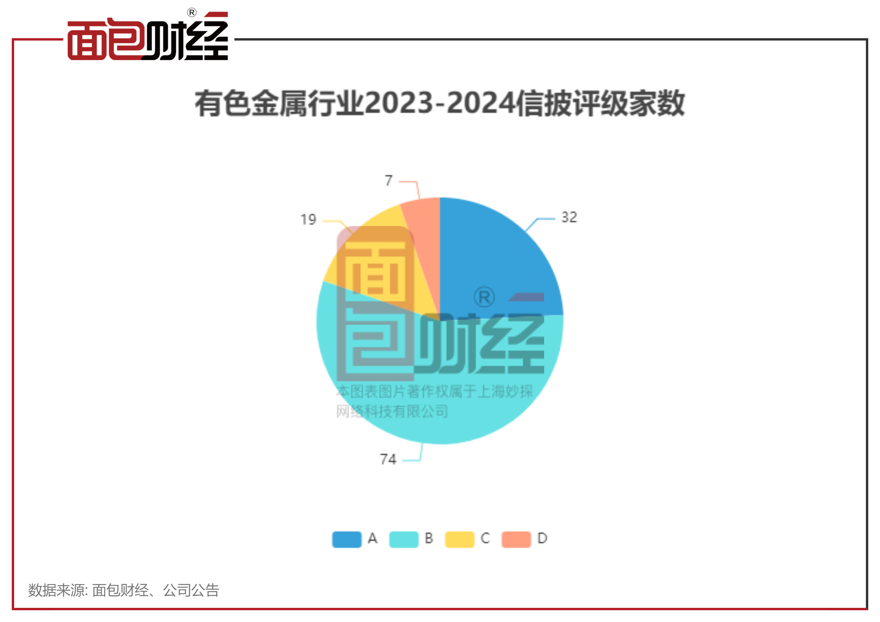 阐明申万一级分类,2023-2024年度,有色金属行业共有132家参与了信息线路考评,32家公司侦察后果为A,占比24.2%,B、C、D分别占56.1%、14.4%、5.3%。